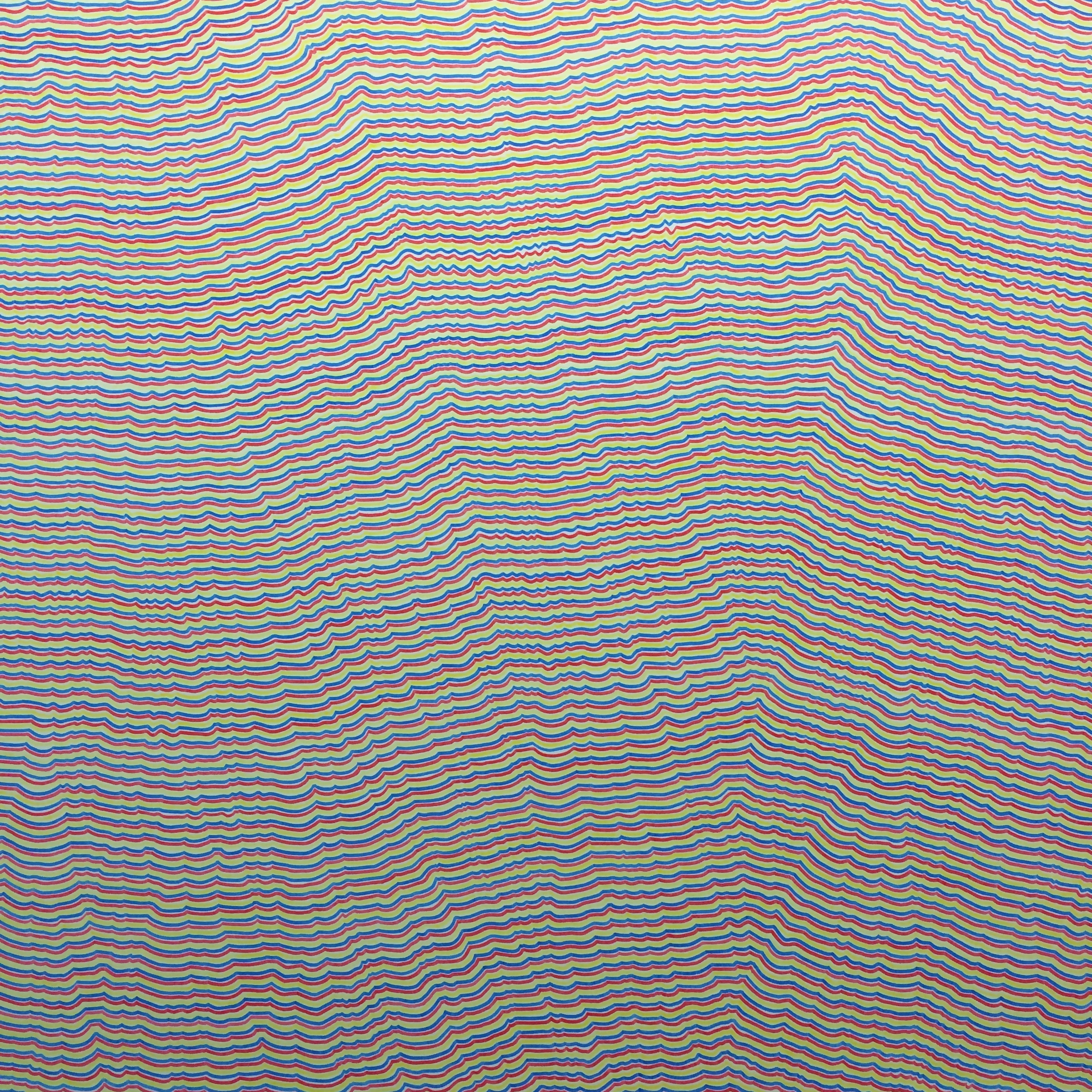 Each wall drawing begins as a set of instructions or simple diagram to be followed in executing the work. As the exhibition makes clear, these straightforward instructions yield an astonishing—and stunningly beautiful—variety of work that is at once simple and highly complex, rigorous and sensual. The drawings in the exhibition range from layers of straight lines meticulously drawn in black graphite pencil lead, to rows of delicately rendered wavy lines in colored pencil; from bold black-and-white geometric forms, to bright planes in acrylic paint arranged like the panels of a folding screen; from sensuous drawings created by dozens of layers of transparent washes, to a tangle of vibratory orange lines on a green wall, and much more. Forms may appear to be flat, to recede in space, or to project into the viewer’s space, while others meld to the structure of the wall itself.